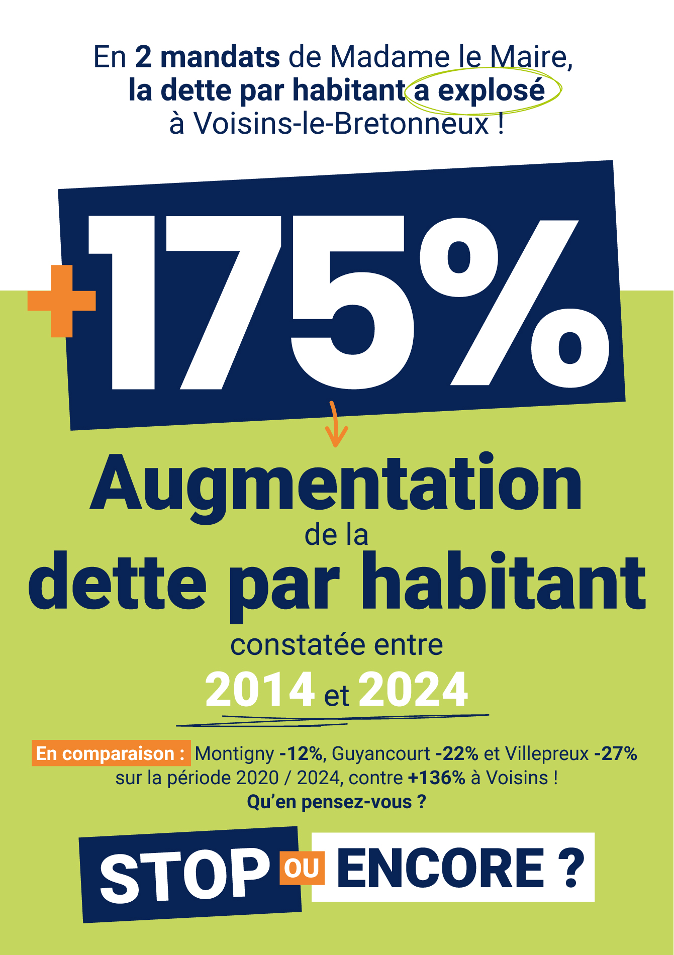 Augmentation de la dette par habitant constatée entre 2014 et 2024, à Voisins le Bretonneux